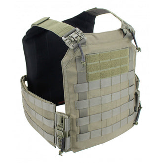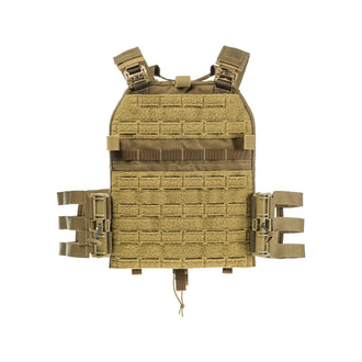 The front and rear plate pockets of plate carriers are connected by shoulder straps. Additionally, they feature either simple straps for attachment or a cummerbund, ensuring the plate carrier stays in place. Some cummerbunds integrate a quick release system for easy removal.