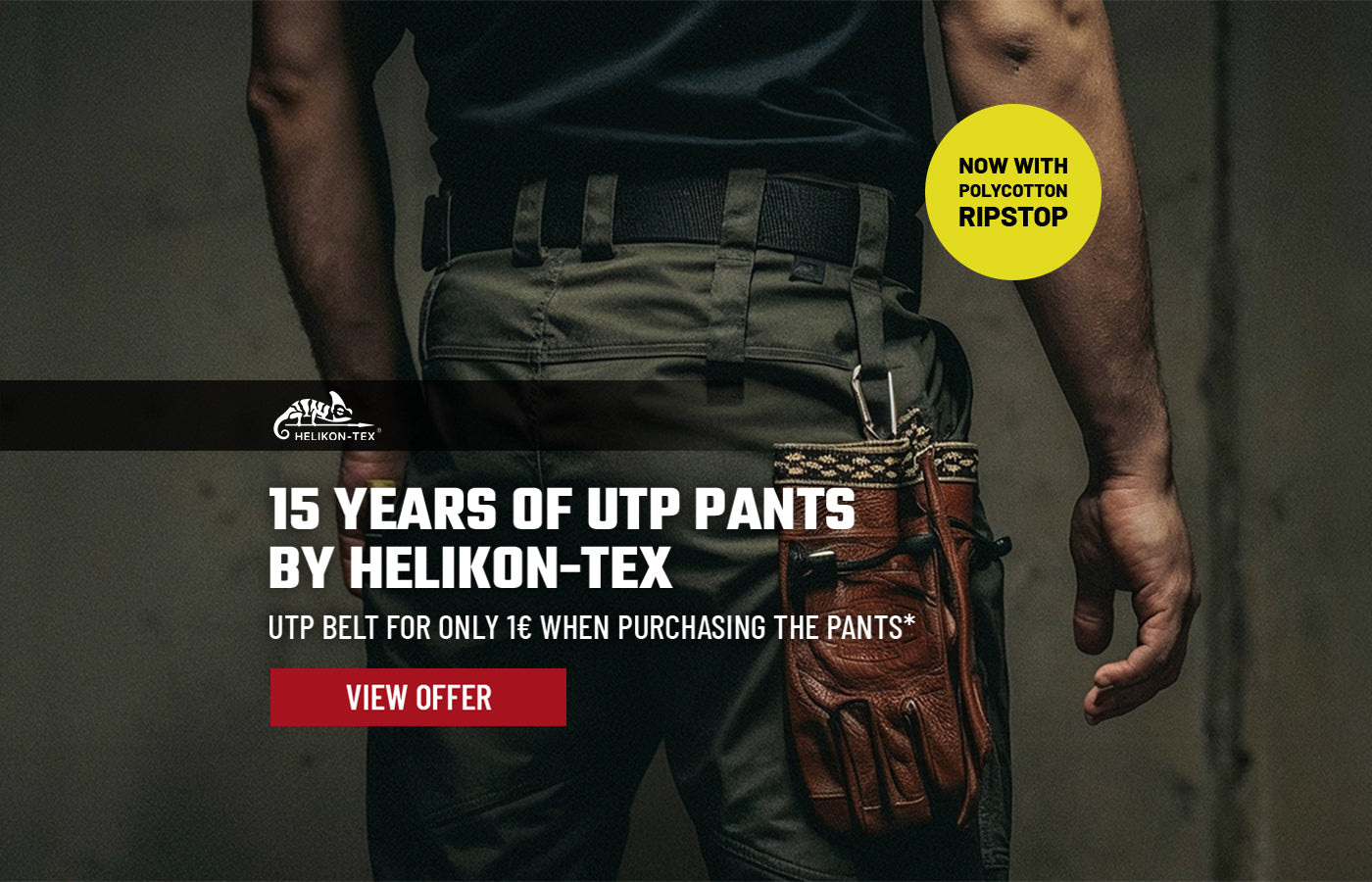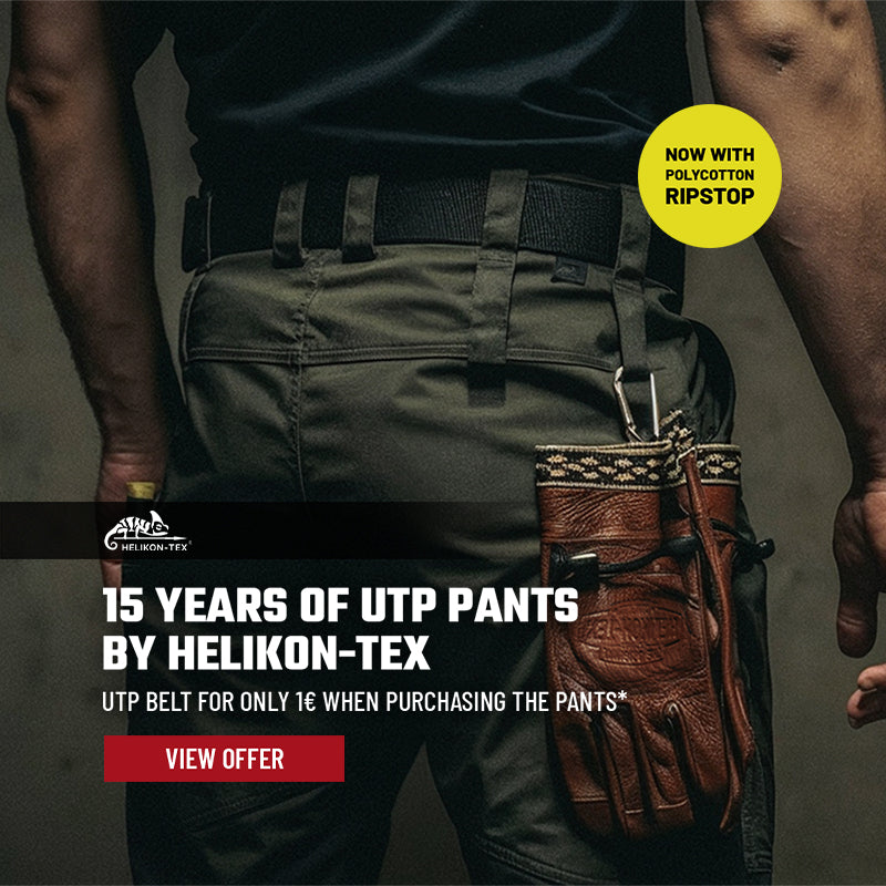*Helikon-Tex “15 Years UTP" belt for 1€ with the purchase of a UTP Pants. Max. 1 belt per customer. Not available separately. While supplies last.