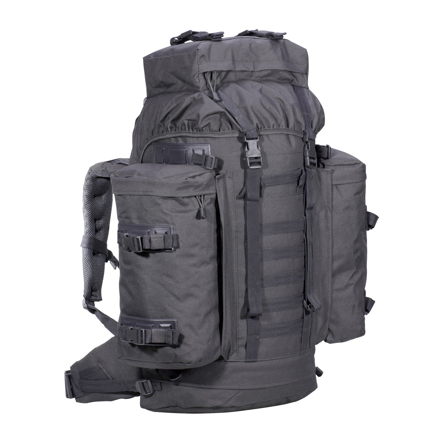 The AB Backpack BW Mountain 80 L is a replica of the popular army mountain backpack in very good import quality. The backpack has a total volume of 80 liters, which consists of the main backpack and the two detachable side pockets. The side pockets have a two-way divider zipper and two compression straps. With the zipper and Hook and Loop, the two side pockets can be combined into a small backpack. This way the large backpack can stay in the hotel, tent etc. and you have a 20 liter daypack for your day trip. The elaborate back padding with integrated Aluminum frame ensures top wearing comfort. The backpack also has fastening straps to attach various accessories such as a sleeping bag, sleeping mat or cup, drinking bottle, etc. within easy reach. The AB Backpack BW Mountain 80 L is ideal for multi-day excursions and hiking trips.