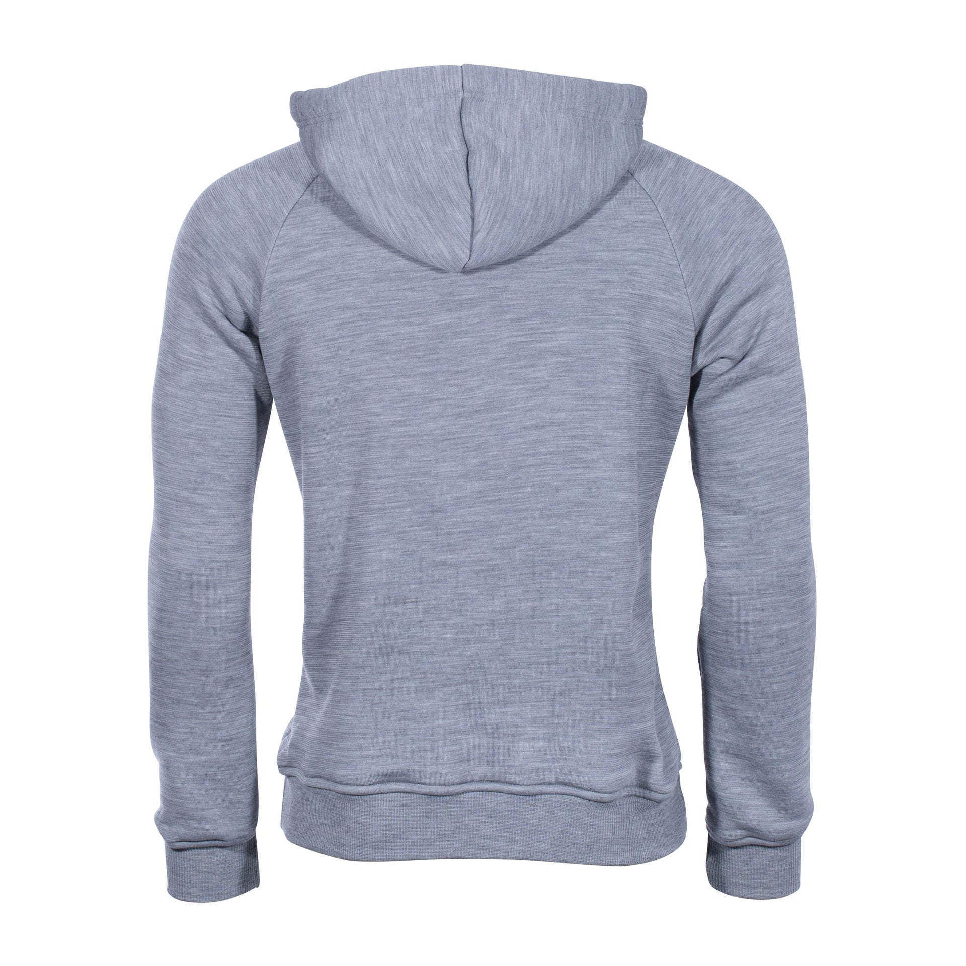 The Aclima Hoodie FleeceWool gray melange is a functional, comfortable piece of clothing for cold days. It is equipped with a hood with drawstring, ribbed cuffs and a kangaroo pocket. The hoodie is rounded off visually by an embroidered Aclima chest logo.