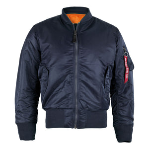 The water-repellent Alpha Industries flight jacket MA-1 convinces with stability and comfort. You can stow your valuables in the sleeve pockets, two spacious hand pockets and two inside pockets. The outer material keeps you dry and the inner lining has a signal function due to its orange color. A robust brass front zipper with wind flap and knitted cuffs on the sleeves, waist and collar round off the jacket.