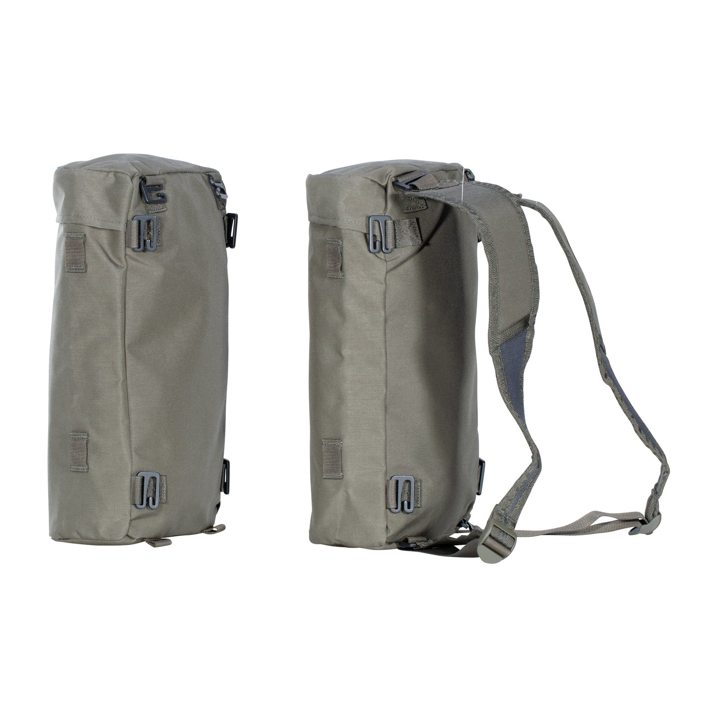 The Berghaus FLT Pockets IR stone gray olive is the perfect addition to your FLT backpack. The pockets with the ACH applications can be attached either to the side or to the front of an FLT backpack. An FLT IR shoulder strap is included in the delivery for sizes M and L. A bag can be carried individually if this is attached. In addition, the FLT Pockets IR in these sizes have loops for compression straps.