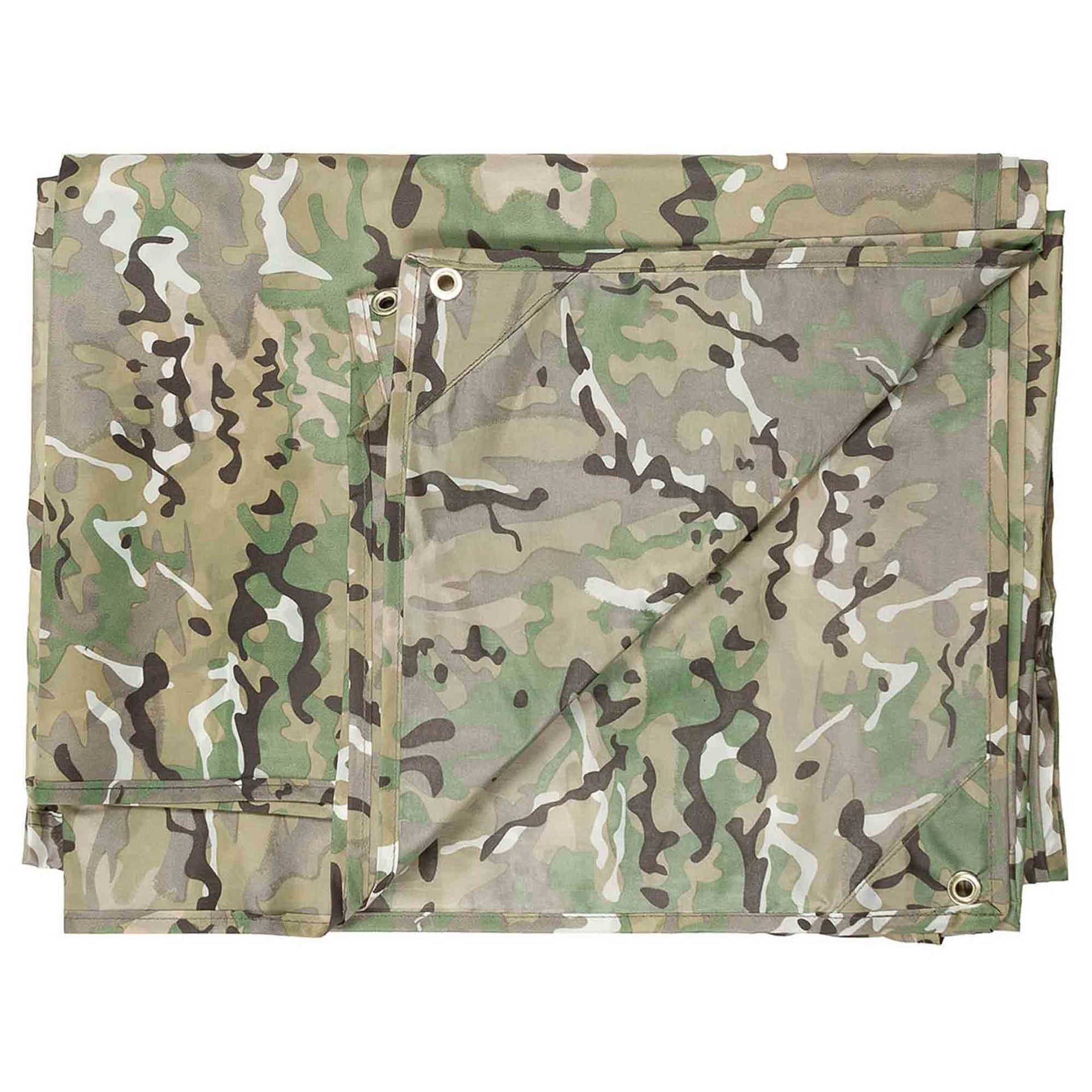 The MFH Multi-Purpose Tarp 400 x 500 cm is a waterproof protective tarpaulin with a wide range of uses. Whether as rain protection,, awning, as an underlay or to cover equipment, the tarp offers good protection against wind and weather with a water column of 1500 mm. It can be securely attached with a total of 14 reinforced metal eyelets. When not in use and for transport, it is stowed away in the packing bag.