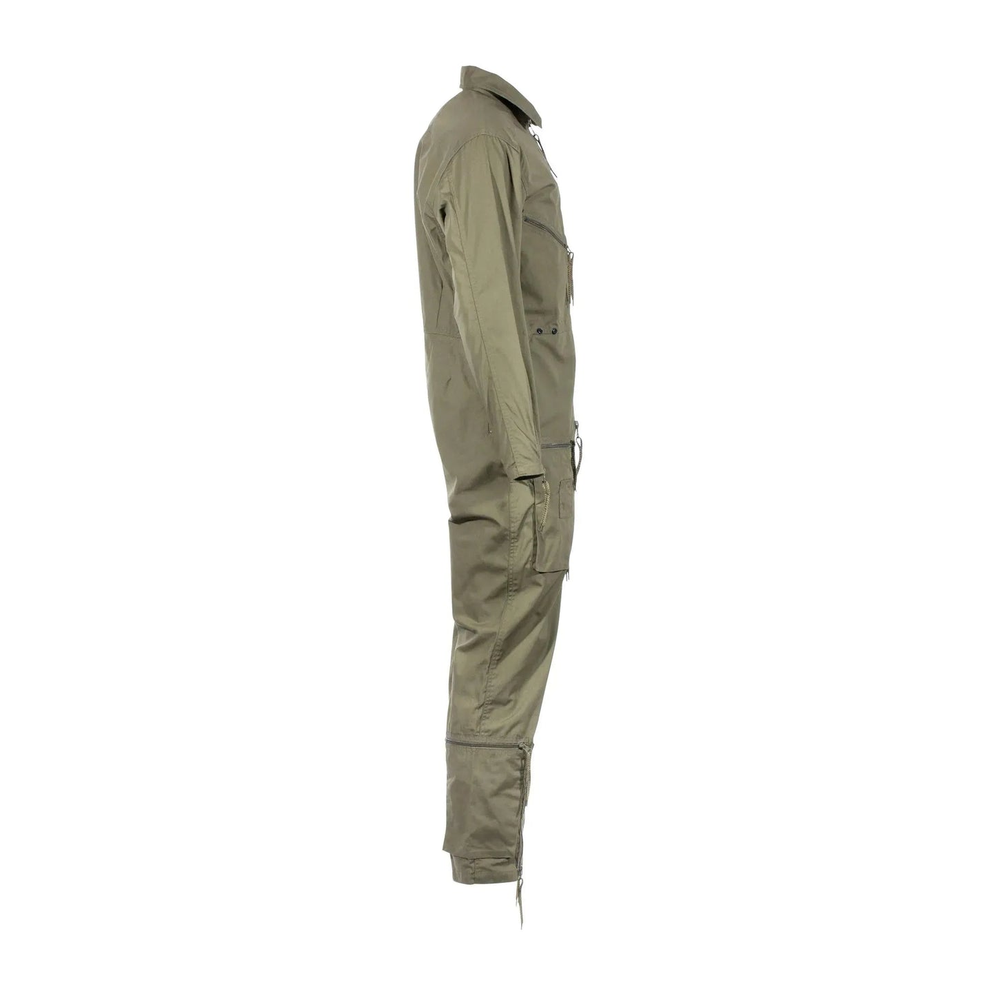 The Mil-Tec BW Flight Suit Olive is a high-quality replica of the original German Bundeswehr flight suit, offering functionality and comfort. It features a total of nine pockets – including two chest pockets, two thigh pockets, two lower leg pockets, and a multifunctional pocket on the left upper arm – providing ample storage for gear and personal items. Ventilation holes under the armpits ensure consistent airflow, contributing to a comfortable wearing experience. The two-way front zipper allows for quick dressing and undressing, while the waist width can be individually adjusted with snap buttons, and the arm and leg cuffs with zippers. The robust material made from 65% polyester and 35% cotton, along with the double stitching, makes the suit particularly durable – ideal for use under demanding conditions.