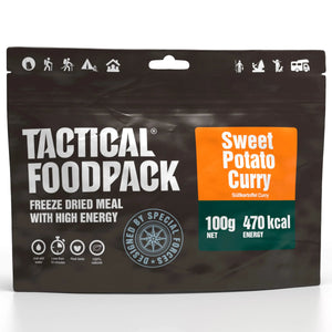 Bold, spicy, and plant-based – Tactical Foodpack Sweet Potato Curry (115 g) combines sweet potatoes, chickpeas, rice, and coconut milk into a vegan taste experience that’s perfect for days outdoors, deployments, or emergency supplies.