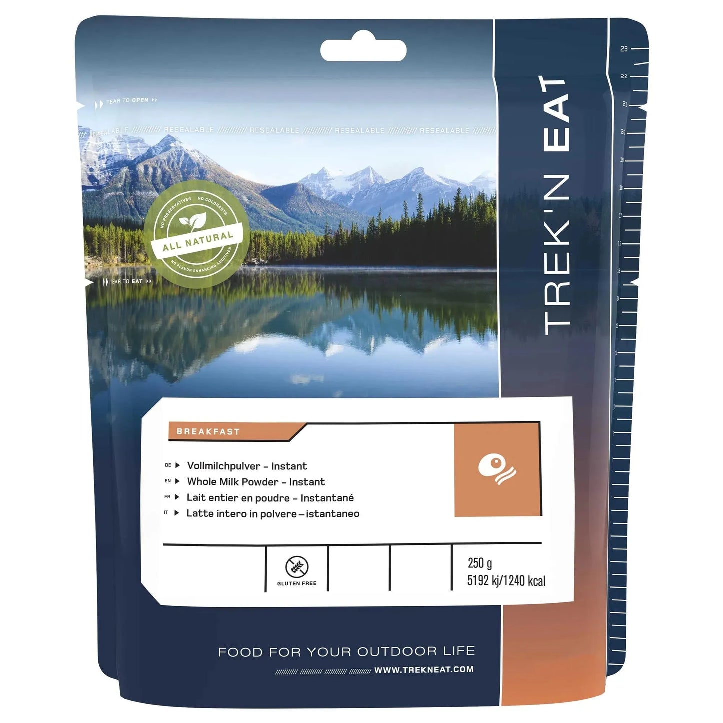 The Trek'N Eat whole milk powder convinces with good taste and a long shelf life. It provides you with the energy you need and is suitable for trips as well as for emergency preparedness, as part of your survival rations or as a backup in your backpack or car.